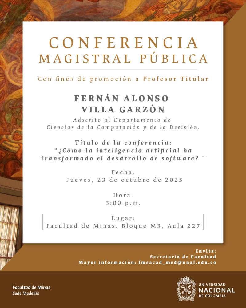 ¿Cómo la IA ha transformado el desarrollo de software? Hora: 3:00 p.m.Lugar: Bloque M3-227