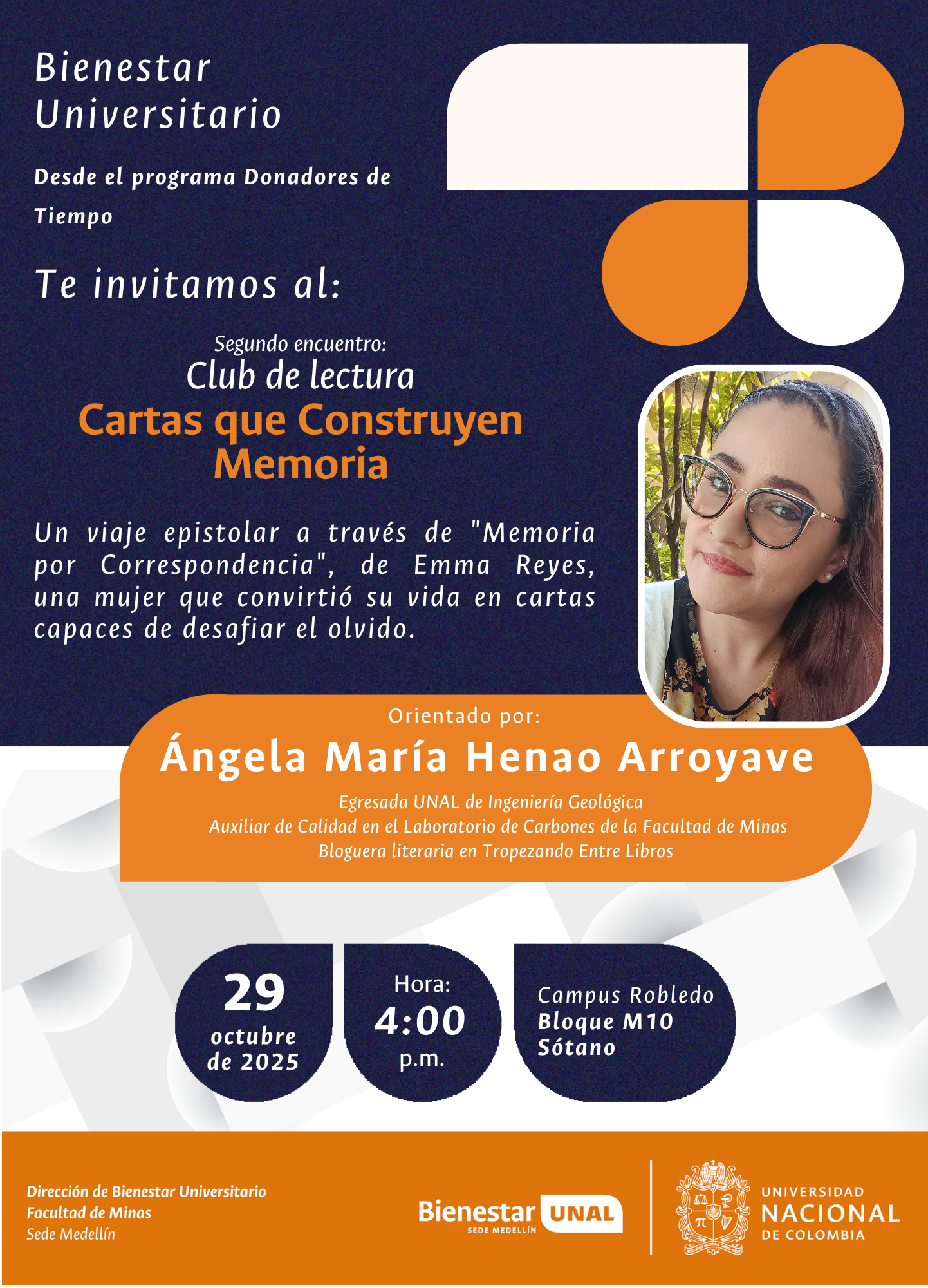 Cartas que construyen memoria libro "Memoria por Correspondencia".Hora: 4:00 p.m. Lugar: Bloque M10